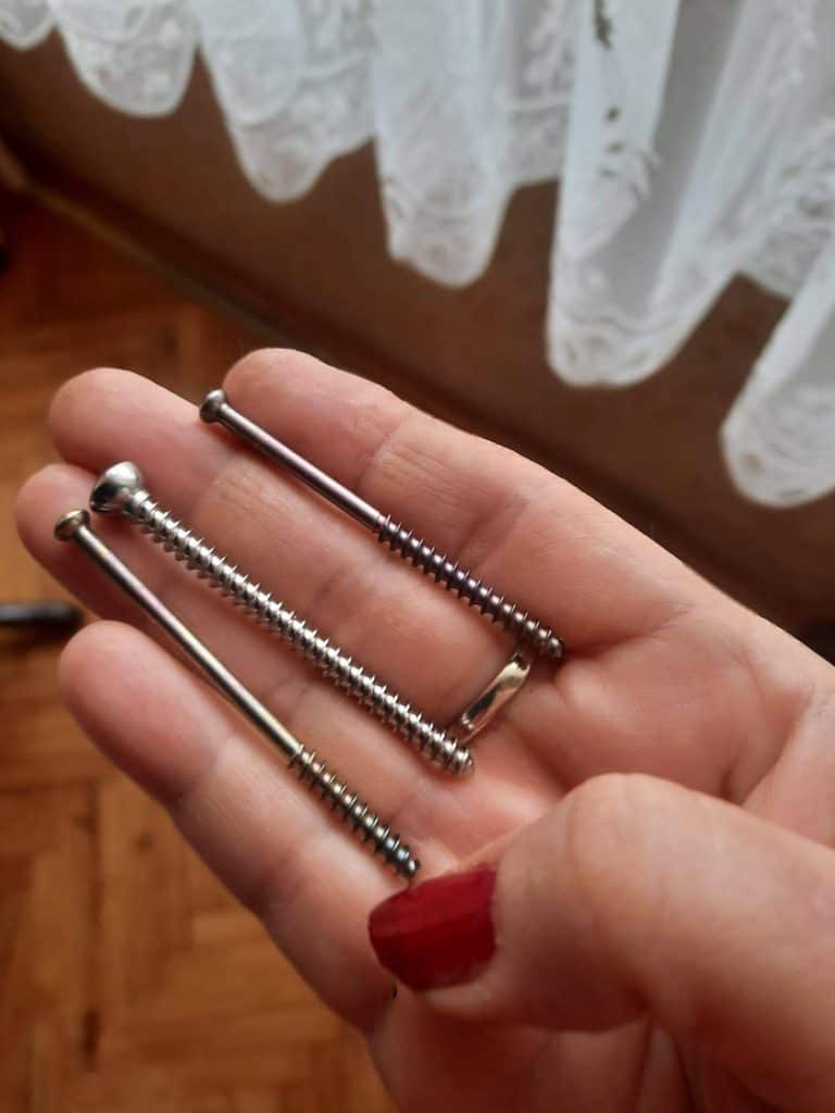 Geçen hafta diz ameliyatımdan bahsetmiştim. Annem okuyunca dizimden çıkan çivileri ve röntgenlerimi çıkarıp bana fotoğraflarını attı.