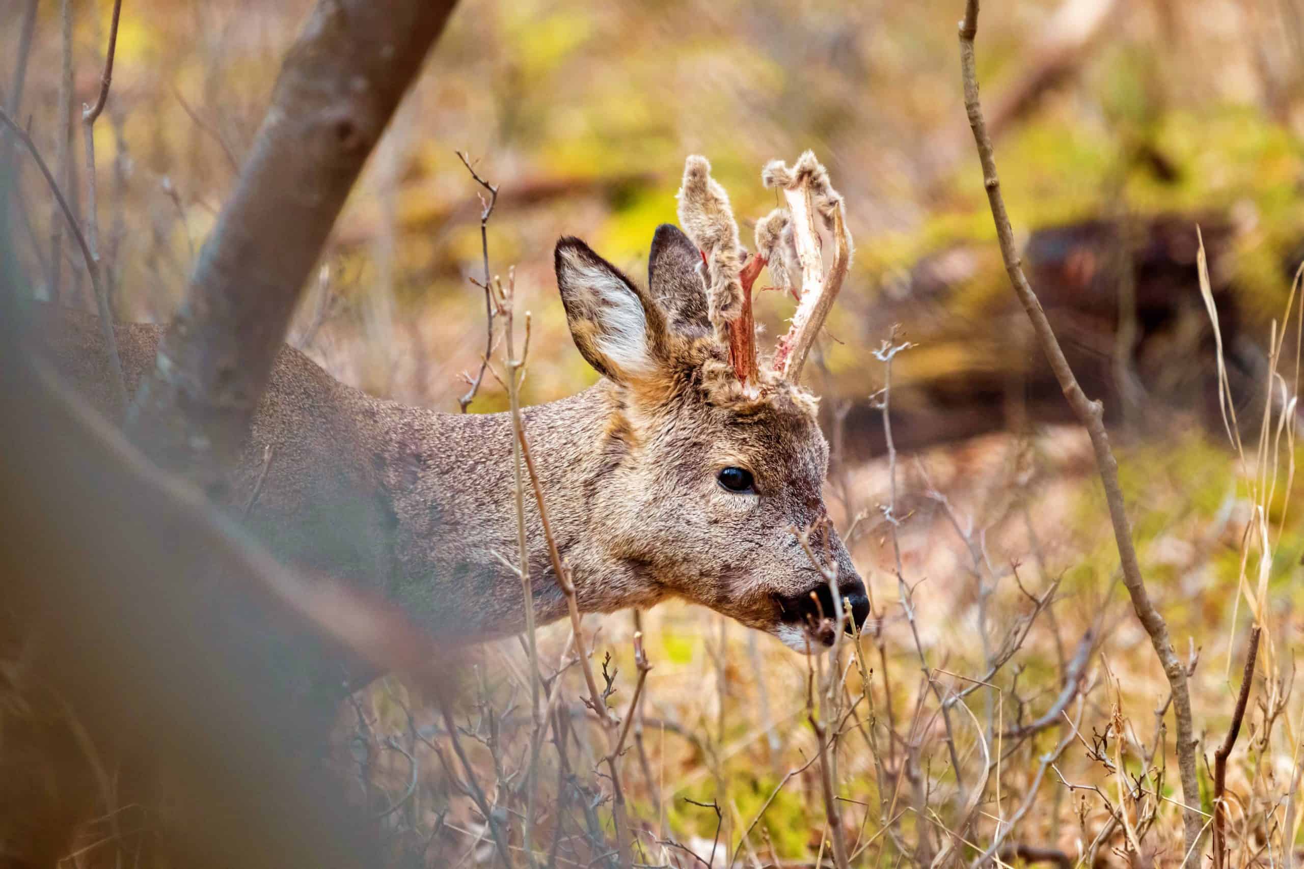 Karacaların boynuzları yeni çıktığında, boynuzları besleyen böyle kadifemsi kürkle kaplı oluyormuş. Ben başta kavga etmişler sandım tabi ki.